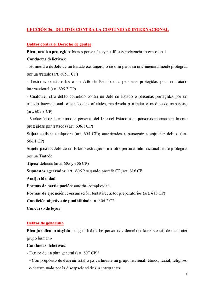 Ficha de los delitos contra la comunidad internacional