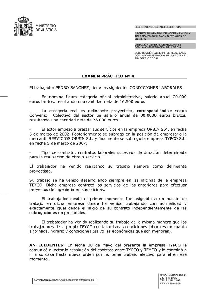 Caso Práctico del examen para el Acceso a la Abogacía del Ministerio de Justicia.