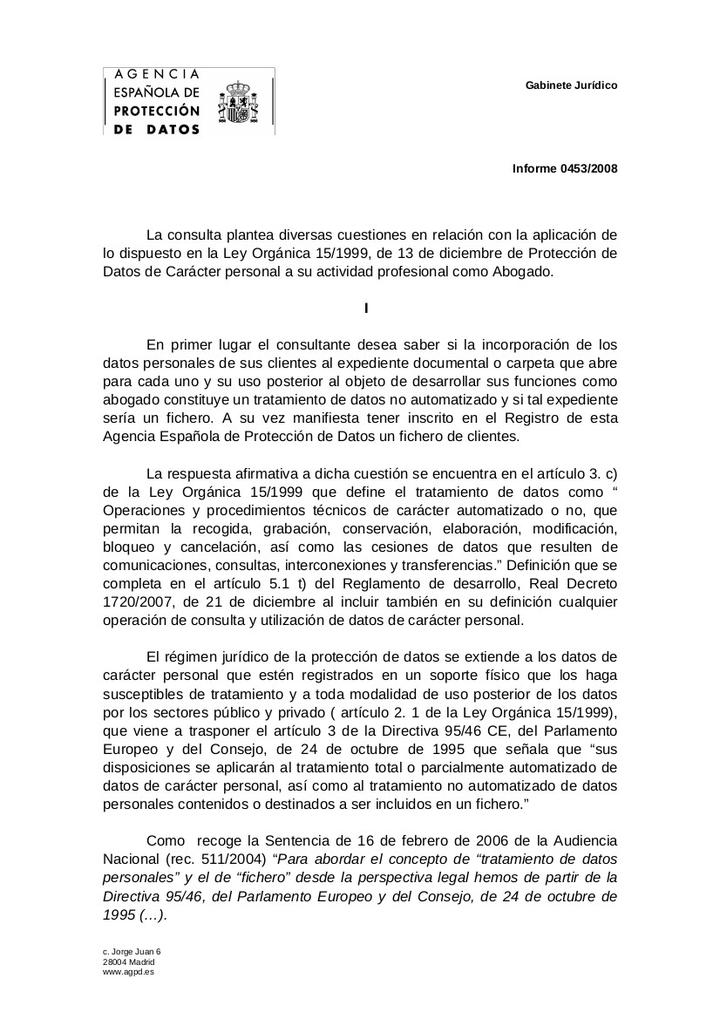 El consultante desea saber si la incorporación de los datos personales de sus clientes al expediente documental o carpeta que abre para cada uno y su uso posterior al objeto de desarrollar sus funciones como abogado constituye un tratamiento de datos no automatizado y si tal expediente sería un fichero. A su vez manifiesta tener inscrito en el Registro de esta Agencia Española de Protección de Datos un fichero de clientes.