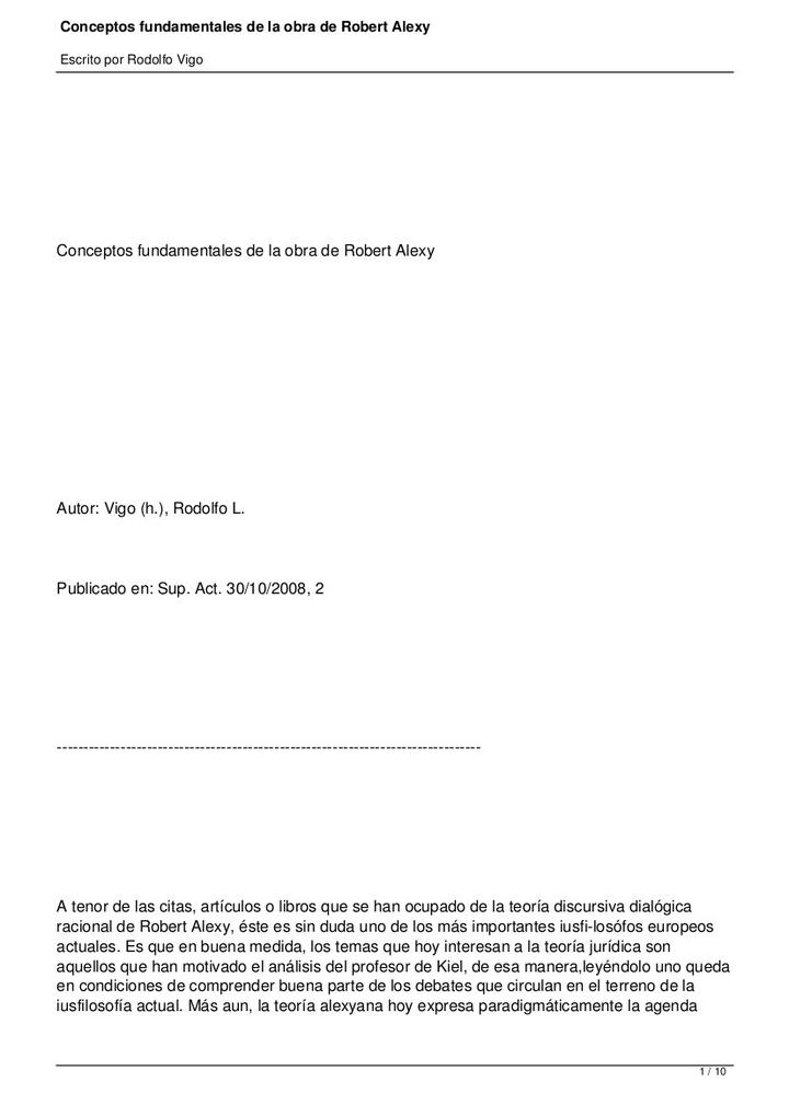 El panorama descrito por este artículo ilustra la riqueza, amplitud, rigor y actualidad de la teoría discursiva alexyana por lo que fácilmente puede concluirse que se trata de una propuesta que justificadamente se ha constituido en un interlocutor privilegiado en los debates que en la actualidad se despliegan en el campo de la filosofía del derecho y la teoría jurídica en general… El profesor de Kiel con valentía académica y originalidad ha venido a renovar discusiones y perspectivas que tienen consonancia con el derecho más real y concreto de nuestro tiempo.
