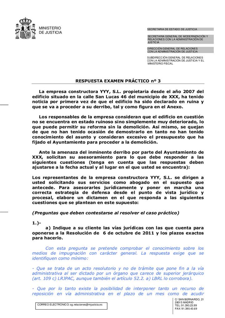 Caso Práctico solucionado del examen para el Acceso a la Abogacía del Ministerio de Justicia.