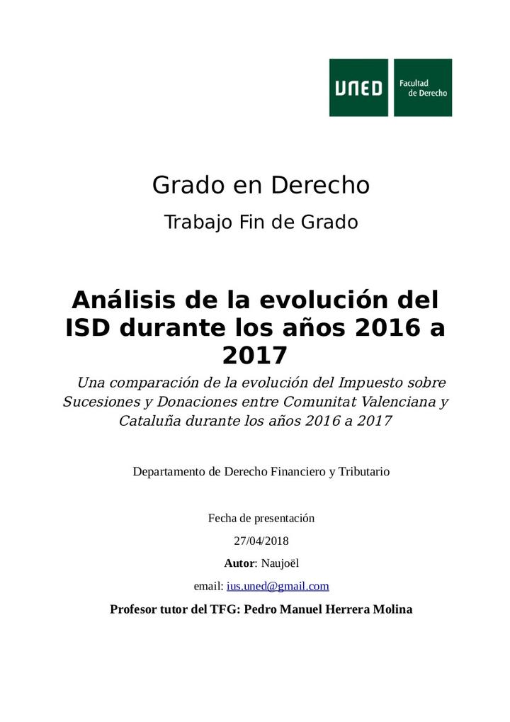 El presente Trabajo Fin de Grado analiza la evolución del Impuesto de Sucesiones y Donaciones en los años 2016 y 2017 entre Cataluña y Comunitat Valenciana desde un punto de vista objetivo, incidiendo en los principios de justicia tributaria y observando la jurisprudencia del Tribunal de Justicia de la Unión Europea y del Tribunal Constitucional.